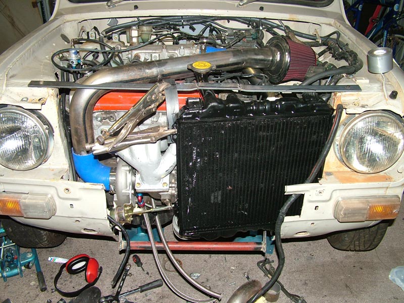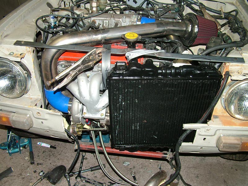 Another short example of one way to install a front mount radiator. The radiator itself is supposed to be from a Honda City Turbo but I am not so sure. Either way it fits but only just it should be interesting to see how it goes...