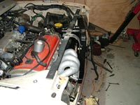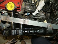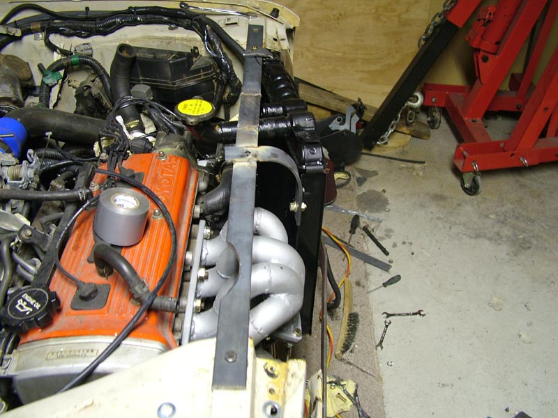 As you can see in this image the brace has been constructed for the most part and the arm that will come down and bolt the radiator in place is under construction