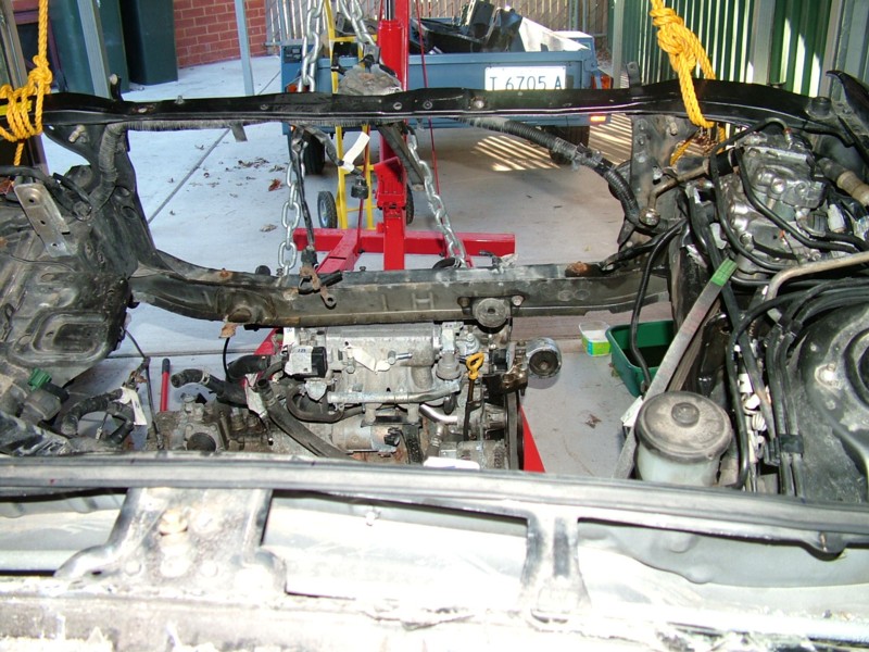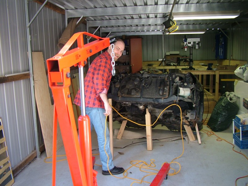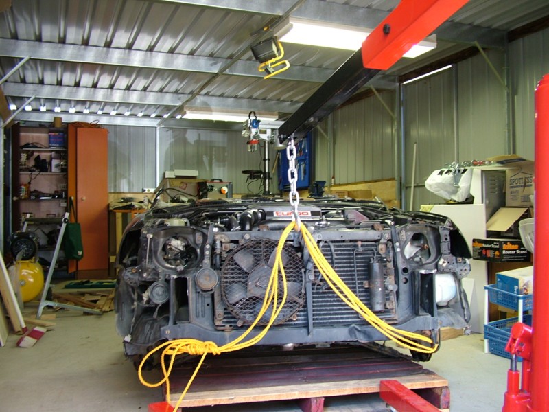 it from the wishbones. Much easier! I then lifted the car over the engine and then hoisted the engine away. Reason? I realised that the engine was originally